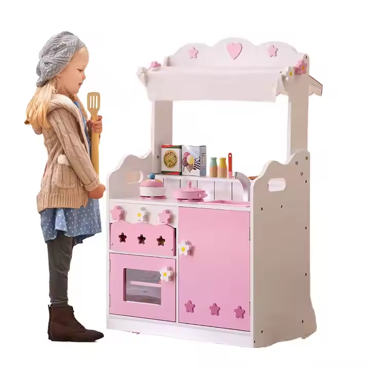 Il giocattolo da cucina a doppio lato, dimensionato a 42,5*60*97 cm, dispone di dettagli ricchi e ampio spazio per soddisfare le diverse esigenze di simulazione della cucina dei bambini.