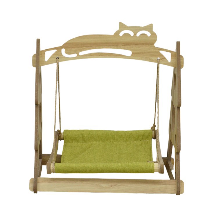 Amaca per gatti in legno con robusta struttura triangolare, uso stabile, non trema, sicura da usare.